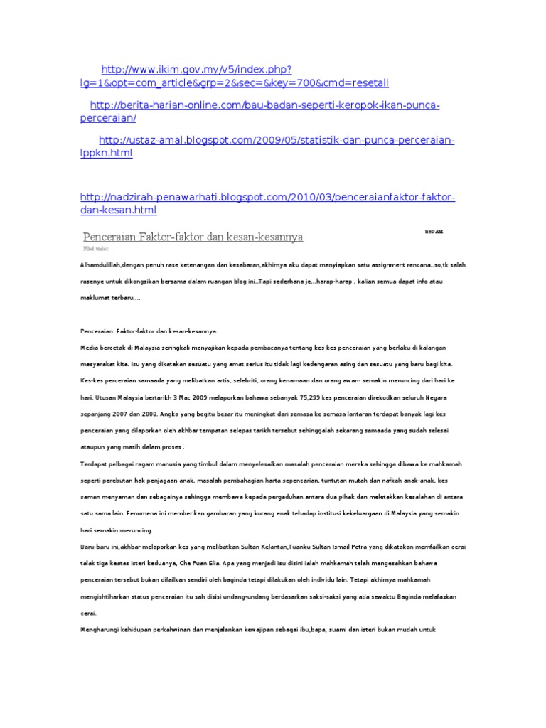 Sejak awal gerakan politik di malaysia memang bercirikan politik identitas. Statistik penceraian di negara ini ternyata tidak banyak. Negeri lain di malaysia terutamanya di pertengahan tahun. Berdasarkan statistik, kasus perceraian di indonesia secara umum pun terus meningkat setiap tahunnya. Ini kerana semua sedia maklum suami adalah pencari nafkah utama untuk keluarga.